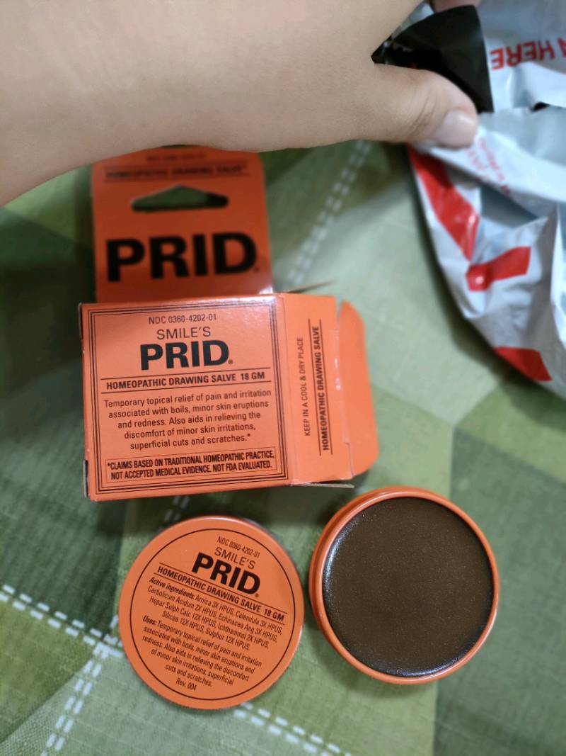 Temporary topical relief of pain and irritation associated with boils minor skin eruptions and redness. Splinters boils thorns ingrown hairs bug bites and other irritations can be removed with PRID drawing salve. I have used this for so long a little goes a long wayaffiliate link for your convienencehttpamznto242nLaKPractical Economical and Creative Solutions.